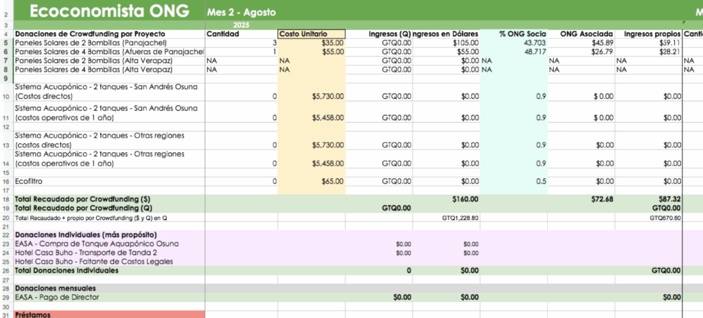 As it is mentioned in Ecoconomist’s August Newsletter in Spanish, one of the main representatives of the Directives of Ecoconomist, Mr. Olof Hörmander who has Bachelor’s in Development Ecoconomics and a Master’s in Humanitarian Studies, recently developed a financial spreadsheet for Ecoconomist thanks to the well counciled guidance of Pionero Philanthropy and its online courses on NGO Management.